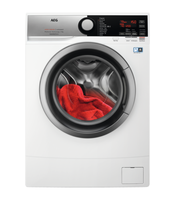 Práčka predom plnená – úzka; AEG ProSense ™ L6SE27SCE; Hlavné technológie: ProSense ™; En. trieda: D; Kapacita prania (kg): 7; Otáčky za minútu: 1200; Hlučnosť odstreďovanie (db): 73; Parné programy: Program s antialergickou parou; Time Manager / úspora času: Áno; Antialergický program: Áno; Rýchly program: Áno – 20 minút / 3kg; Woolmark: Blue; Rozmery VxŠxHxH max. (Mm): 845x595x450x490; Motor: Invertor motor so zárukou 10 rokov; Displej: Stredná LED displej; Odložený štart: Áno; Český panel a popisky: Áno